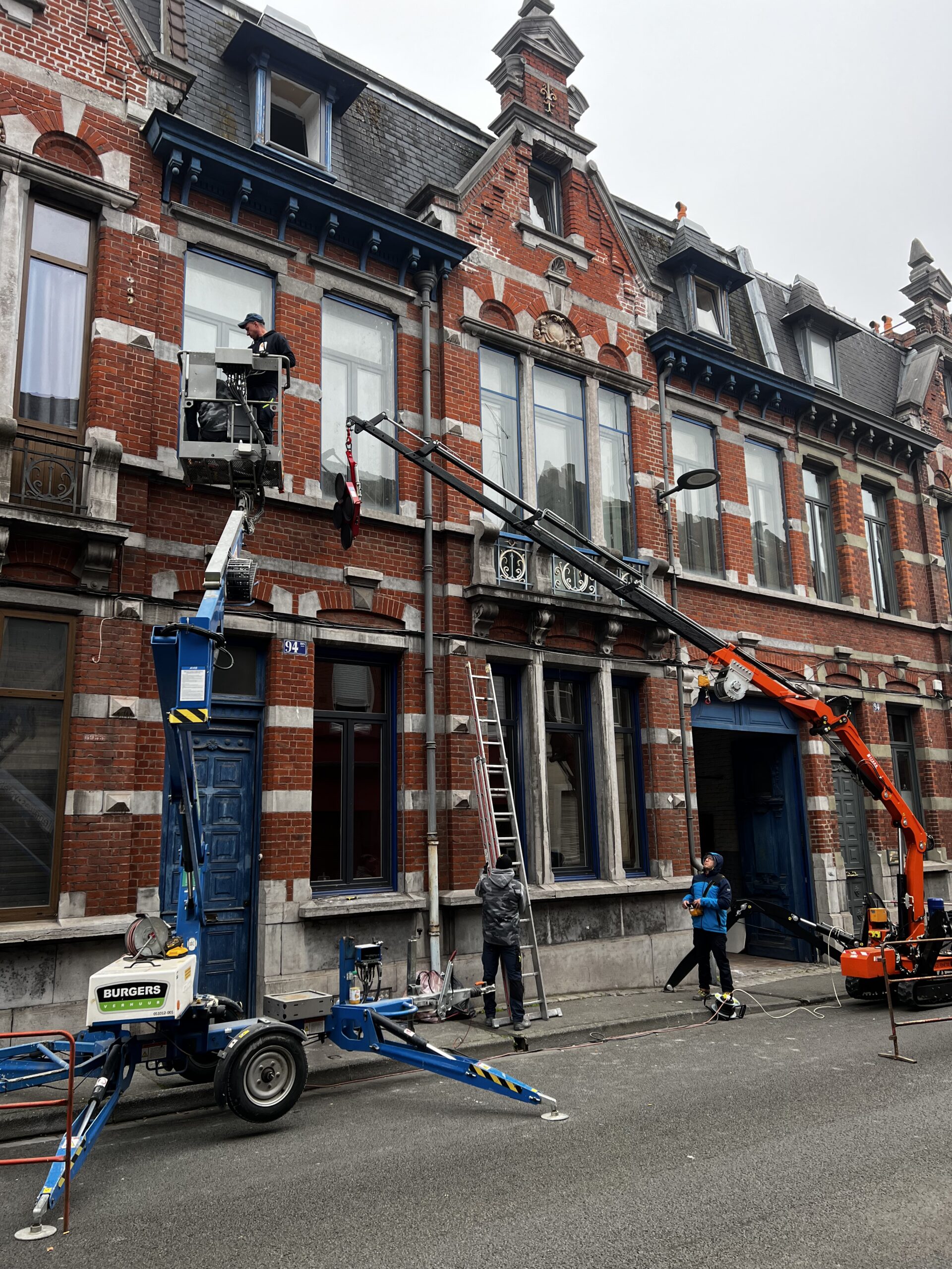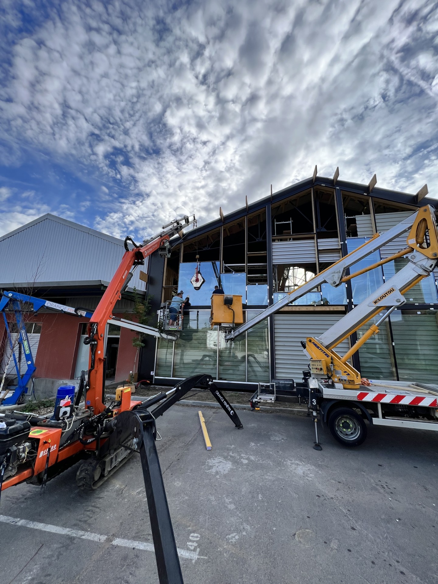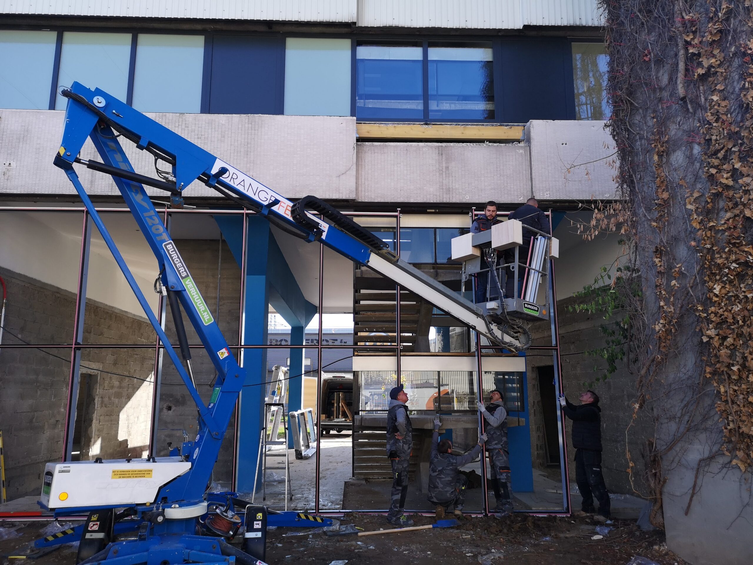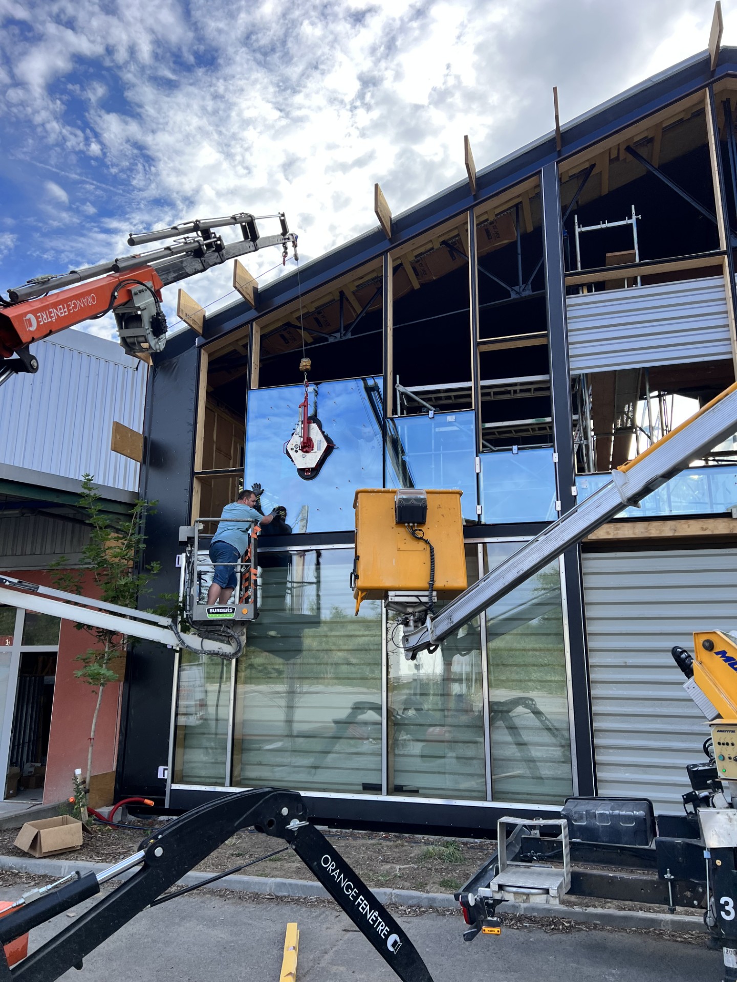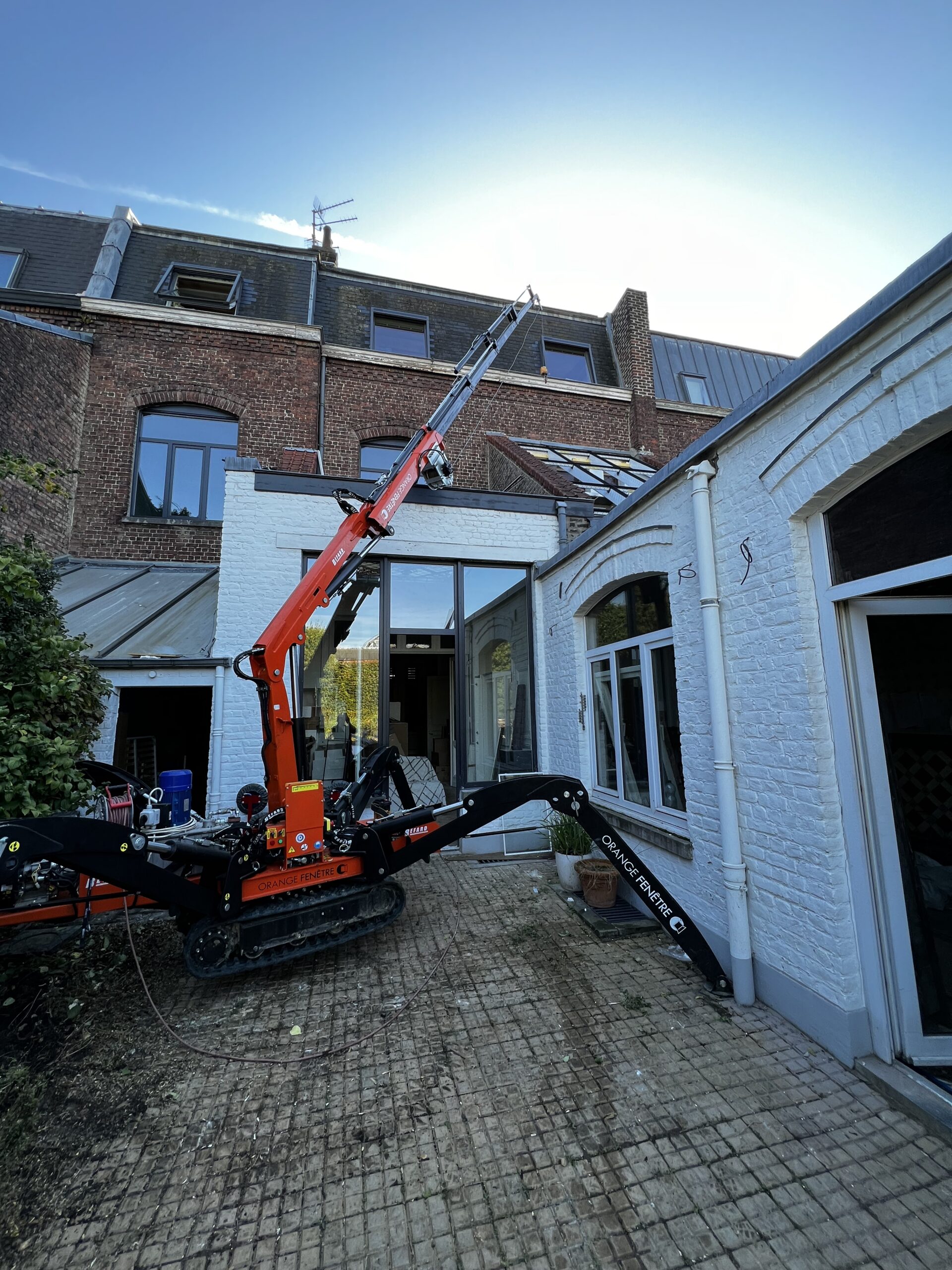 Roubaix - Pose d'une verrière en aluminium à l'aide d'une grue
